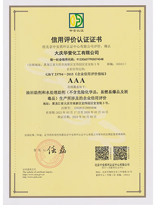 大慶華營化工有限公司成立于2006年7月10日,注冊資金3300萬元,公司類型為有限責(zé)任公司。位于大慶高新技術(shù)產(chǎn)業(yè)開發(fā)區(qū)宏偉園區(qū),是一家集油田助劑產(chǎn)品的研發(fā)、生產(chǎn)、銷售和技術(shù)服務(wù)為一體的現(xiàn)代化高新技術(shù)企業(yè)。公司注重科技創(chuàng)新,公司擁有18項自主知識產(chǎn)權(quán)。企業(yè)承擔(dān)過國家火炬計劃重點項目、國家科技型中小企業(yè)創(chuàng)新項目等,2011年被科技部火炬高新技術(shù)產(chǎn)業(yè)開發(fā)中心評為國家火炬計劃重點高新技術(shù)企業(yè)。公司十余種產(chǎn)品獲得中國石油天然氣集團公司產(chǎn)品質(zhì)量認(rèn)可證書,其中粘穩(wěn)型驅(qū)油劑獲國家火炬計劃重點項目證書。公司憑借多年對大慶油田及周邊油田地質(zhì)情況的研究,可針對各油田地層特點調(diào)整產(chǎn)品的配方,更好地發(fā)揮各類油田助劑的性能。